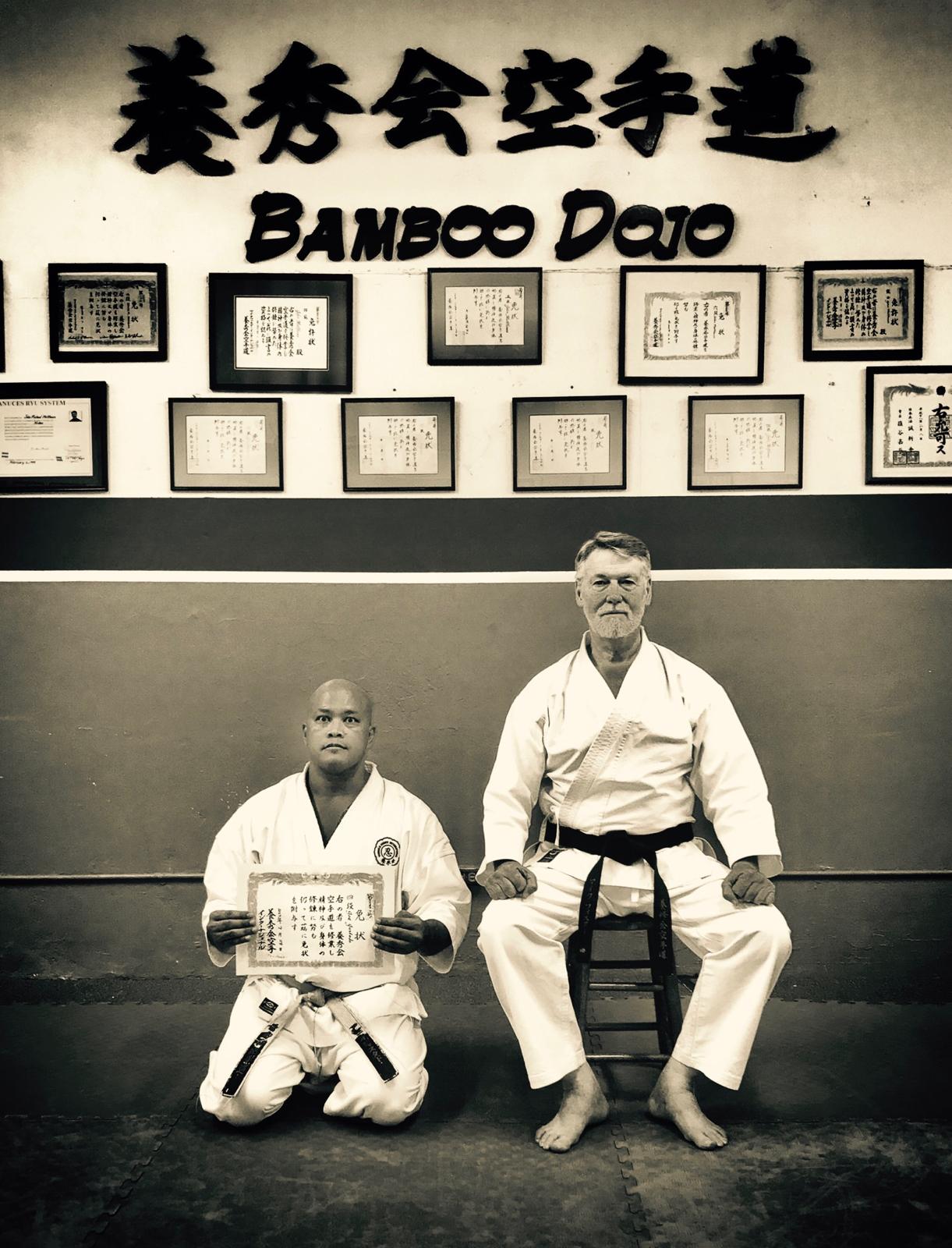 The owner and Chief Instructor of the Bamboo Dojo is John Michael Matthews, Kyoshi, 8th Degree Black Belt in Yoshukai Karate and Kobudo, 3rd Degree Black Belt in Sanuces Ryu-JuJitsu, 4th Degree Black Belt in Zen Nihon Toyama Iaido Renmei, 4th Degree Black Belt in the U.S. Federation of Batto Do, 4th Degree Black Belt in Zen Nihon Batto Do Renmei, 1st Degree Black Belt in Seizan Kai Toyama Ryu, and 1st Degree Black Belt in Ryukyu Kobudo.